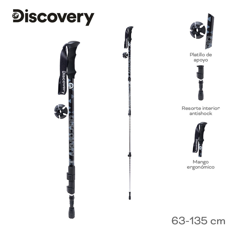 El bastón de trekking marca Discovery es una opción ideal para actividades al aire libre como montañismo, trekking y camping. Cuenta con un sistema anti-shock que ayuda a reducir el impacto durante la caminata, proporcionando mayor comodidad. Está fabricado con materiales resistentes, lo que asegura su durabilidad en condiciones exigentes. Además, dispone de un platillo de apoyo que mejora la estabilidad y el agarre en terrenos irregulares, ofreciendo un soporte confiable en todo tipo de superficie.