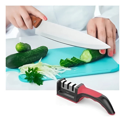 AFILADOR DE CUCHILLOS 3 EN 1 MANUAL DE ACERO INOXIDABLE