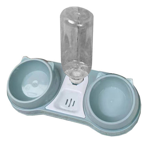 Comedero bebedero doble ideal para perros y gatos, con diseño práctico que incluye una botella para rellenar automáticamente el bebedero. Fabricado en plástico resistente, es liviano y fácil de transportar, perfecto para uso en casa o durante viajes.