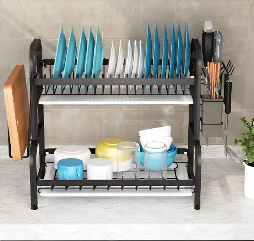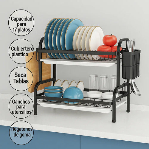 Amplio Seca Platos de 2 niveles - Diseñado para escurrir los platos, vasos, cubiertos y otros utensilios una vez lavados - Confeccionado en material resistente y durable. Ideal para mantener el orden y limpieza en tu cocina, además que podés ahorrar espacio. Diseño Elegante