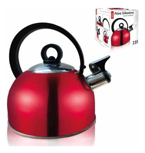 Disfruta de tus momentos de té o café con la elegante Pava Silbadora de Acero Inoxidable de 2,5 litros. Esta pava cuenta con un diseño moderno y atractivo en color rojo que le dará un toque de estilo a tu cocina.