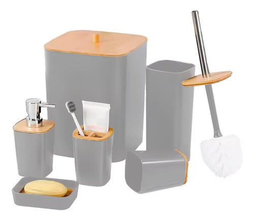 KIT DE BAÑO X6 PIEZAS DE PLASTICO Y BAMBU CRYSTAL ROCK