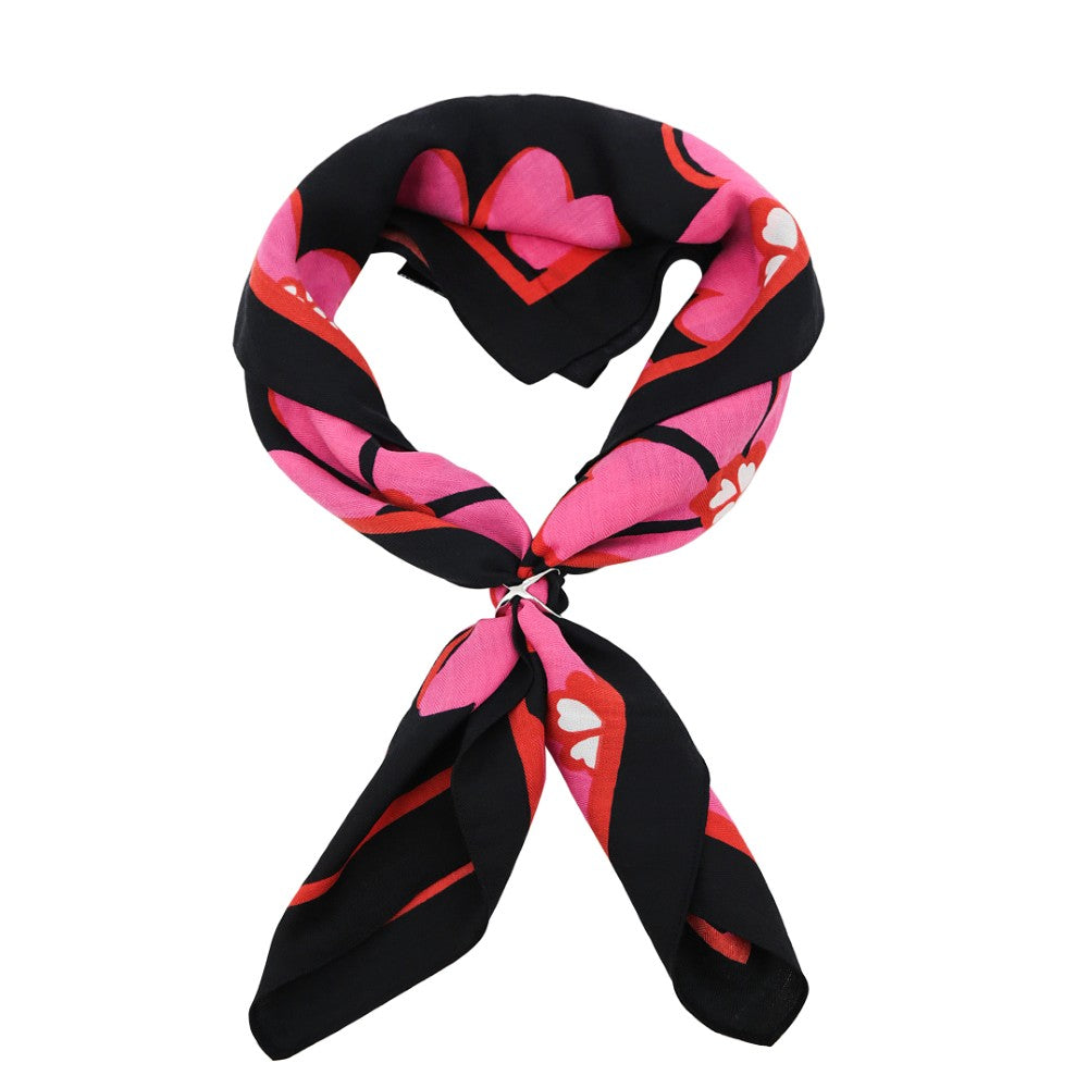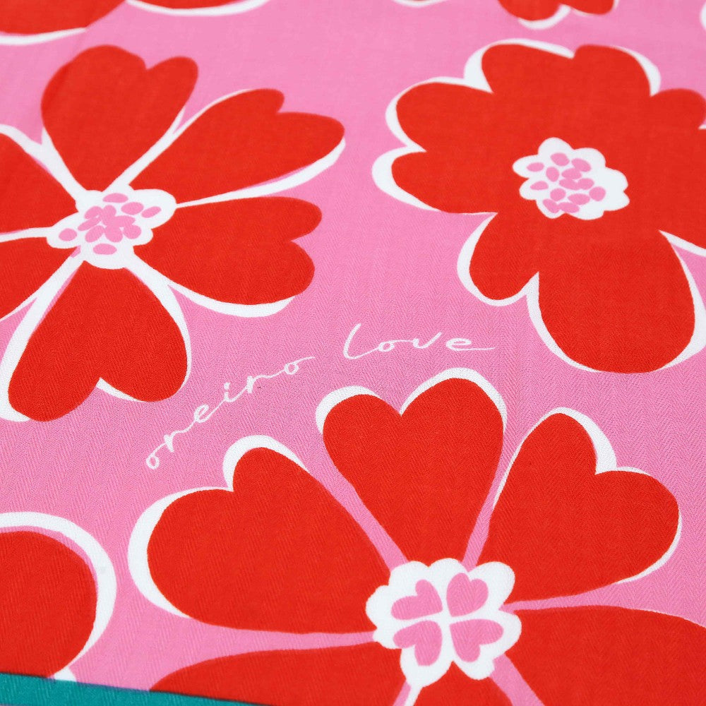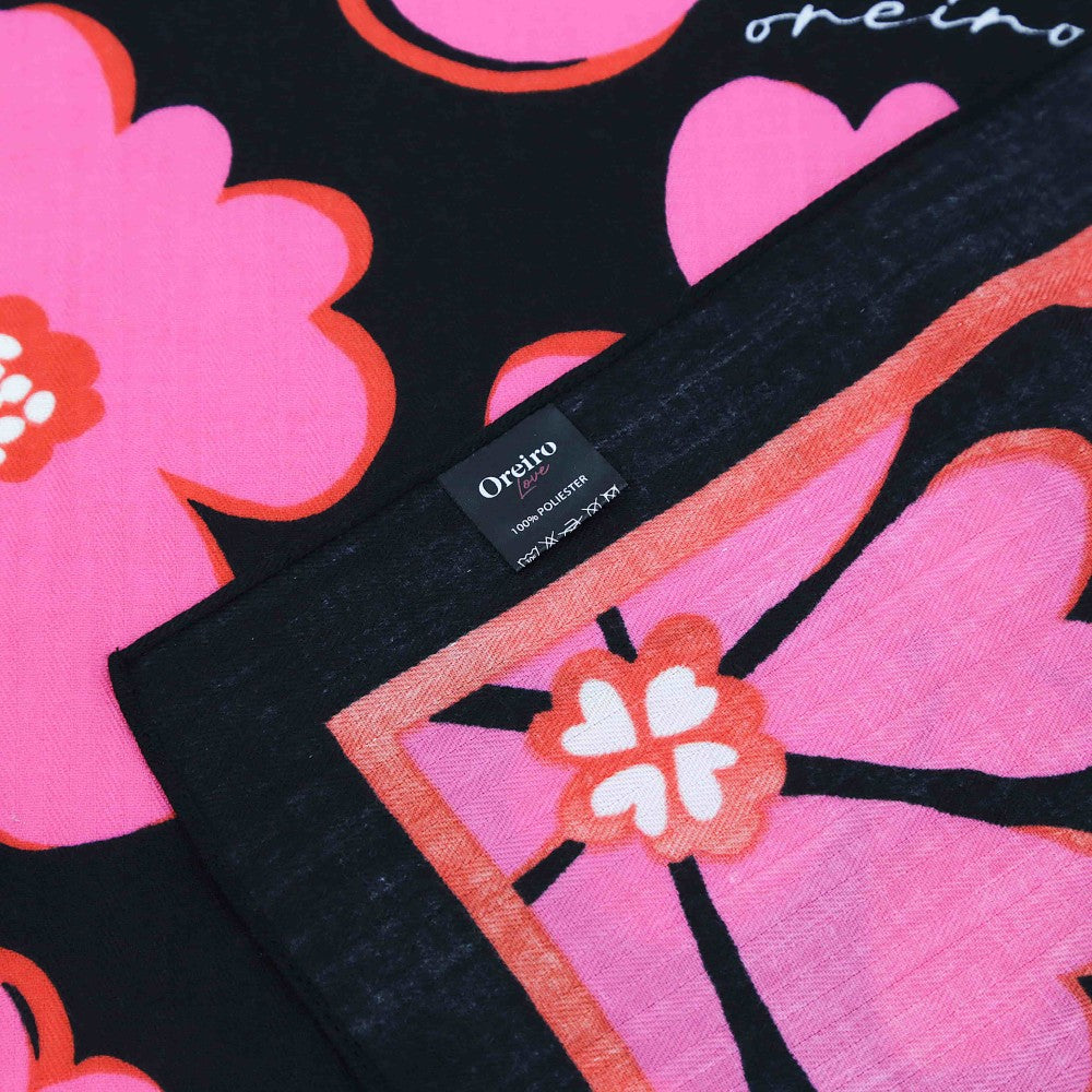 Dale un toque romántico y súper femenino a tu propuesta de accesorios con este pañuelo Oreiro Love con estampa floral, ideal para regalos y ventas por impulso en mostrador.