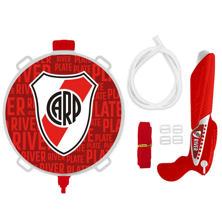 Diseño compacto y liviano en formato redondo con escudo River Plate. Perfecta para los fanáticos más chicos que quieren jugar y refrescarse al mismo tiempo.
