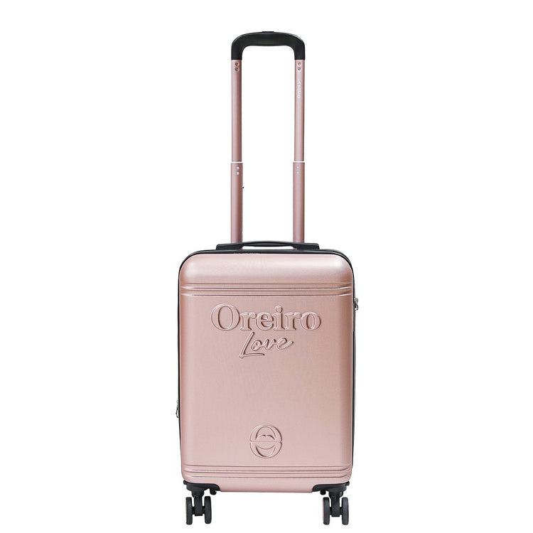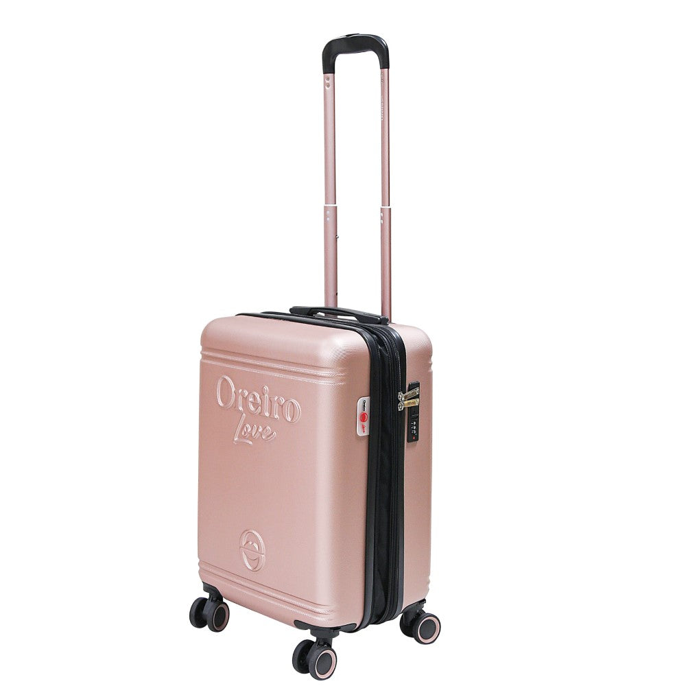 Valija Carry On de la línea Oreiro Love, diseñada para viajes prácticos y con estilo. Tamaño apto cabina, ideal para llevar en avión sin despachar equipaje.