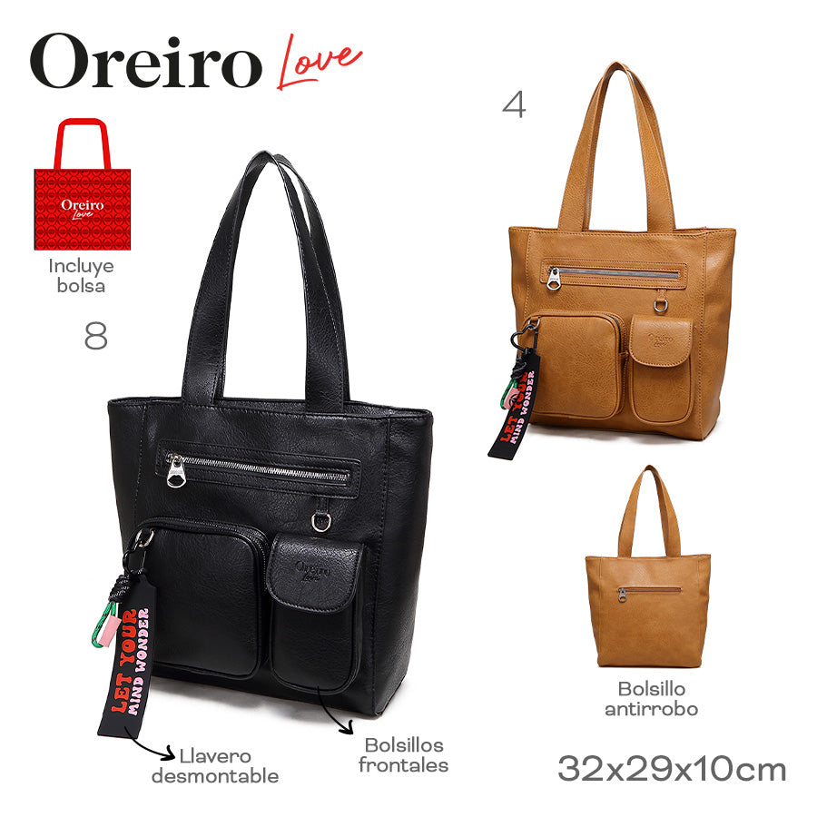 Modelo tote urbano con múltiples compartimentos y fuerte identidad visual. Ideal para boutiques y revendedores que buscan productos con buena capacidad, diseño actual y alta percepción de valor en vidriera.