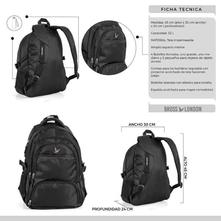 Modelo de mayor capacidad, ideal para estudio, trabajo o uso urbano intensivo. Excelente opción para revendedores que buscan mochilas con gran espacio y múltiples compartimentos, con marca reconocida y alta percepción de valor.