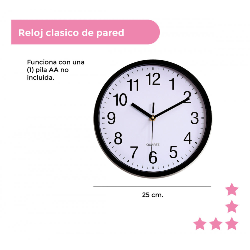 RELOJ DE PARED 25CM DIÁMETRO CLASICO