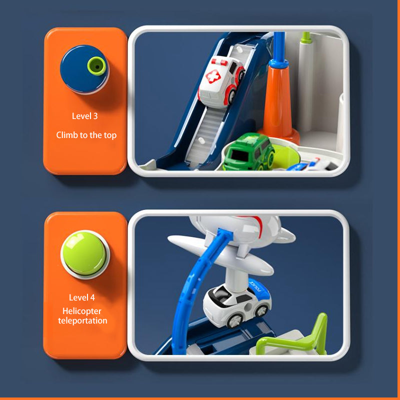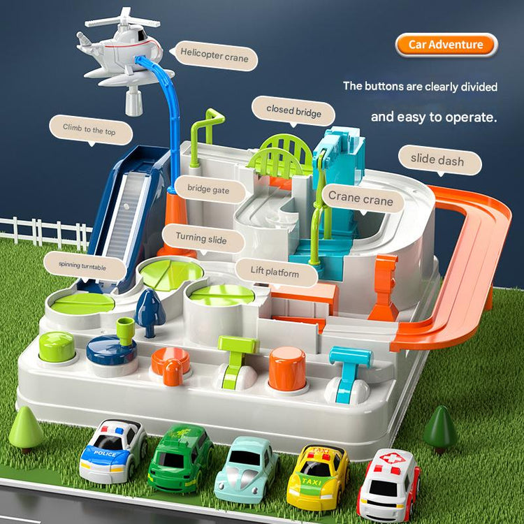 Este centro de aventura incluye múltiples botones mecánicos que accionan rampas, plataformas, puentes, grúas y un deslizadero para que los chicos interactúen sin pilas. Estimula la coordinación, lógica y creatividad, convirtiéndose en un regalo perfecto para todas las edades.