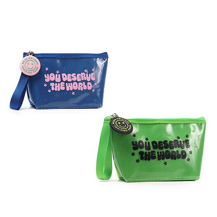 Portacosmetico Muaa. Material: 70% Nilon + 30% Plastico. Dimensiones: Alto 13 cm X Ancho 23 cm X Profundidad 7cm. Posee llavero decorativo.