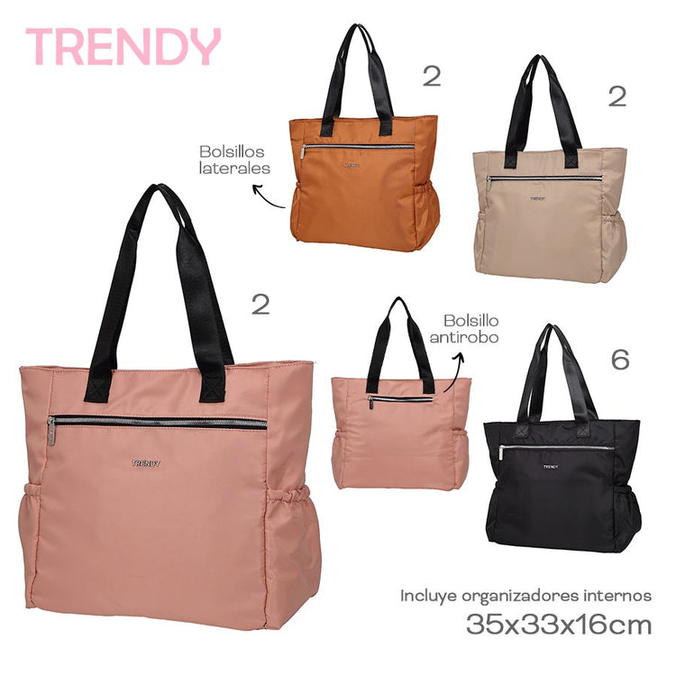 Cartera Trendy. Material: 100% Poliester. Dimensiones: Alto 33cm X Ancho 31 cm X Profundidad 16 cm.