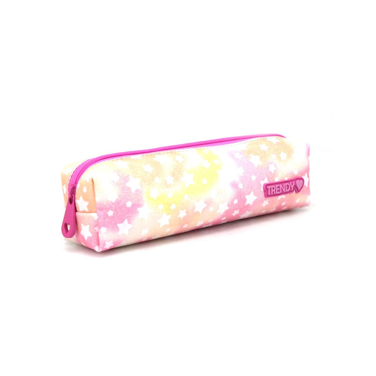 Cartuchera práctica y liviana, ideal para el uso diario escolar. Su diseño moderno con estampado de estrellas y colores suaves la convierte en un producto muy atractivo y de alta rotación en el punto de venta.