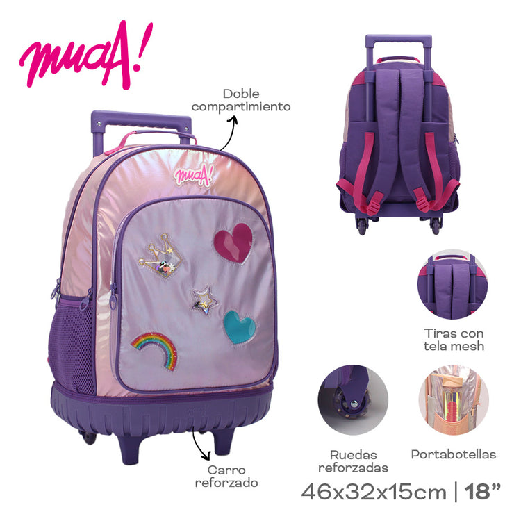 Info: Llavero desmontable, tiras mesh, doble compartimiento, ruedas y carro reforzado, portabotellas