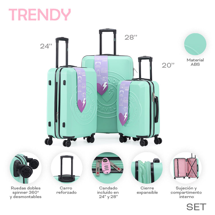Tamaños: 20,24 y 28 pulg,candado incorporado,ruedas spinner 360,compartimientos interiores y tiras d