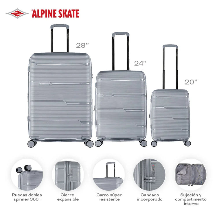 Info: Medidas 20,24 y 28 pulg,candado incorporado,ruedas spinner 360,interior con tiras elásticas ajustable
